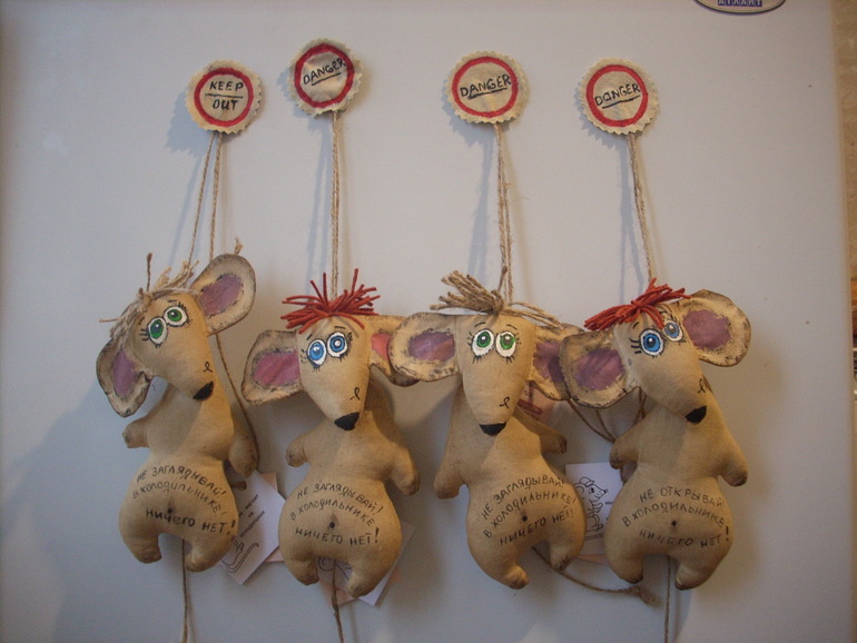 Игрушечный мир - животныеВот такая мышь-магнит на холодильнику меня получилась. Идея взята из интернета, но там мышь висит в холодильнике, тоже очень прикольно, но я решила подвесить ее на магнит