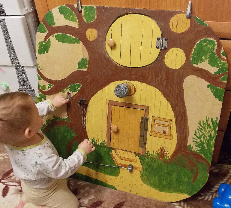 Развивающие игрушкиНедавно я показывала наш бизиборд. Сегодня мы с мужем его дополнили.