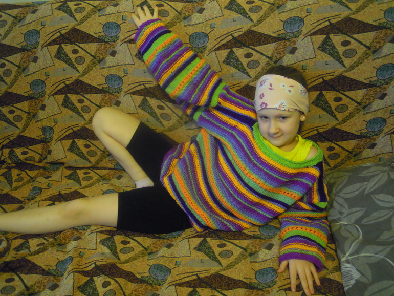 Вязание спицамиЭта модель была задумана к исполнению больше года назад. Пряжу выбирала вместе с мужем и хотелось сделать доче подарок к первому классу. Вот вернется она от бабушки, а я ей такой призент. Но запал пропал, потом дела... пролежала у меня она полуготовая год! Уже будучи в положении решила довести все начатые дела до конца.