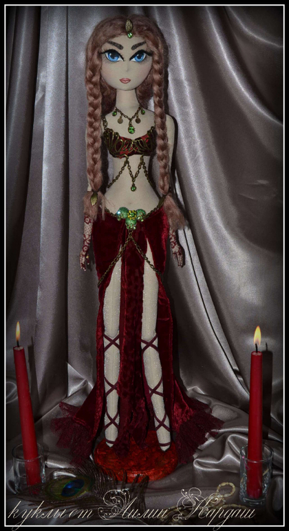 Материалы - тело. сатин синтепух, акриловые краски, шелковые волокна. Костюм, бархат, панбархат, бархатная тесьма, кружево, шифон, металлическая фурнитура, стразы, дерево.![]()