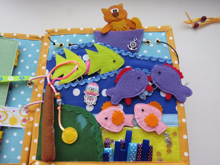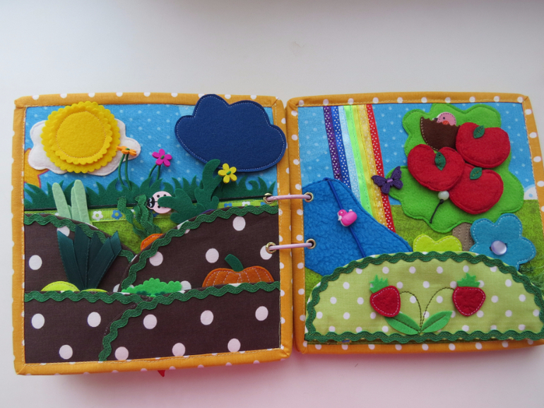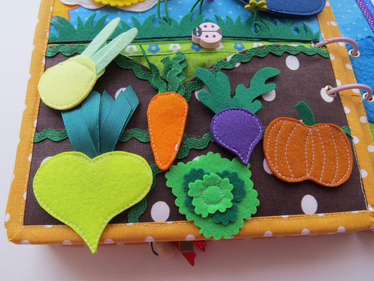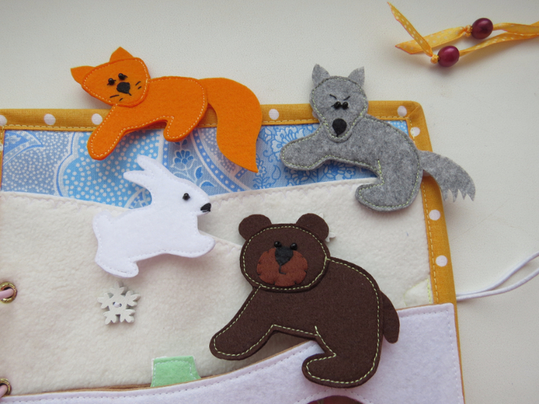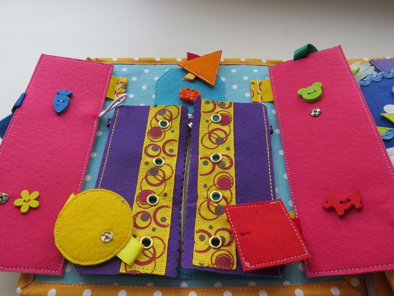 Развивающие игрушкиДоброго утра всем)) Хочу показать вам именную книжечку, которую я недавно закончила. Размер книжки 20 на 20, в книжке 10 развивающих страниц, насчитала 60 съёмных деталей. Прошу к просмотру)))