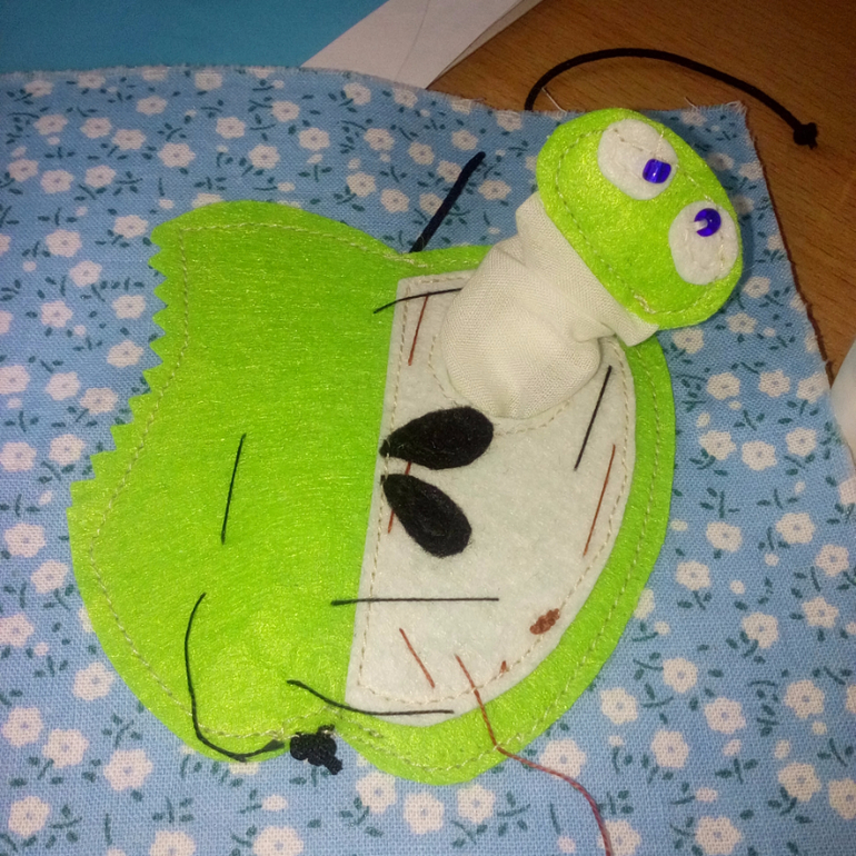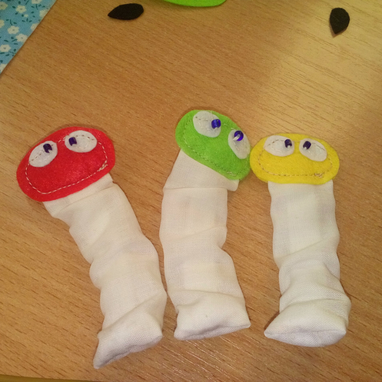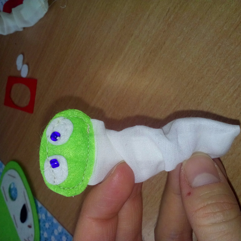 16. Для гусеничек вырезала прямоугольник из хлопка, 2 детали головки и глаз.