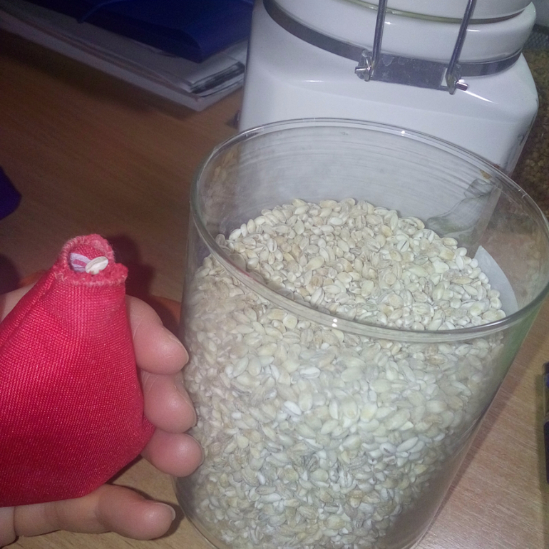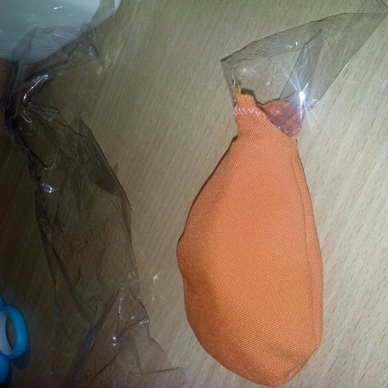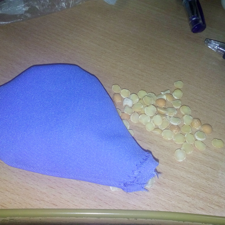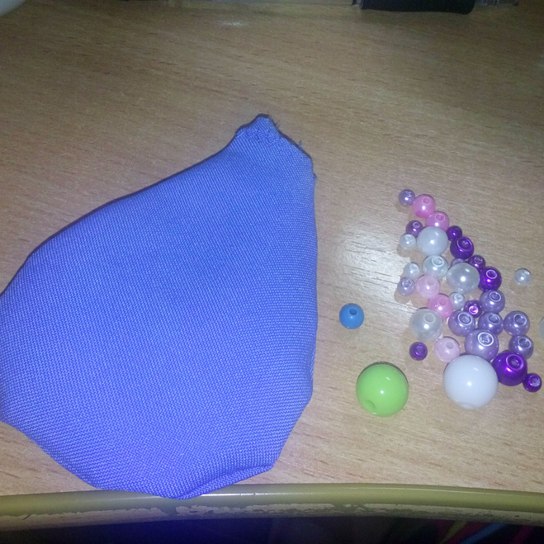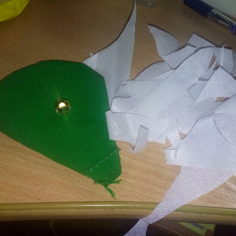 10. Заполнила лепестки перловкой, горохом, кусочками шуршащего пакетика, бусинками, холофайбером, остатками ткани + бубенчик.
