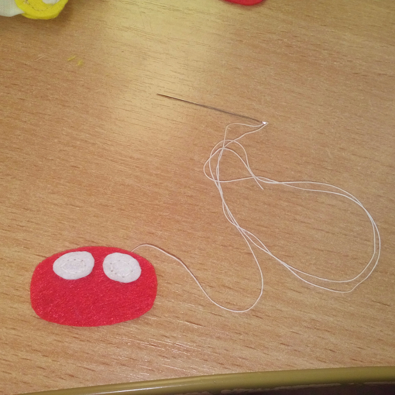 12. Пришила серединку (сверху желтый фетр и снизу хлопок) и часть кнопки.