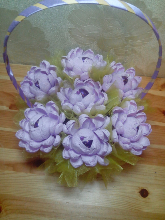 Листиков, мелких цветочков, травки не хватает, с ними букет оживёт на глазах, посмотрите работы других девочек. Не любите искусственные цветы, так по сути у вас цветы тоже искусственные, хоть в них и конфеты. Во втором букете листья длинноваты, немного не соразмерно.