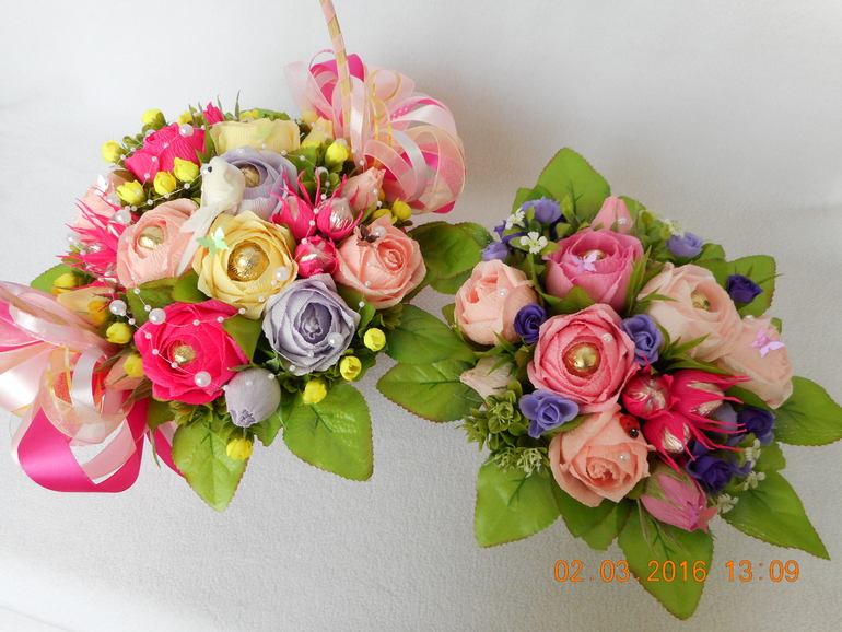 Букеты из конфет. Свитдизайн.Покажу и я что сделала к 8 Марта. Под катом много фото.
