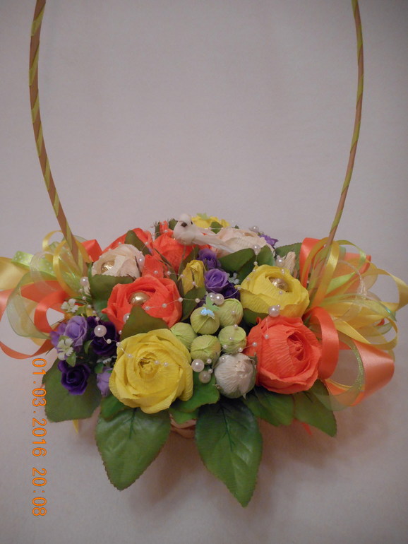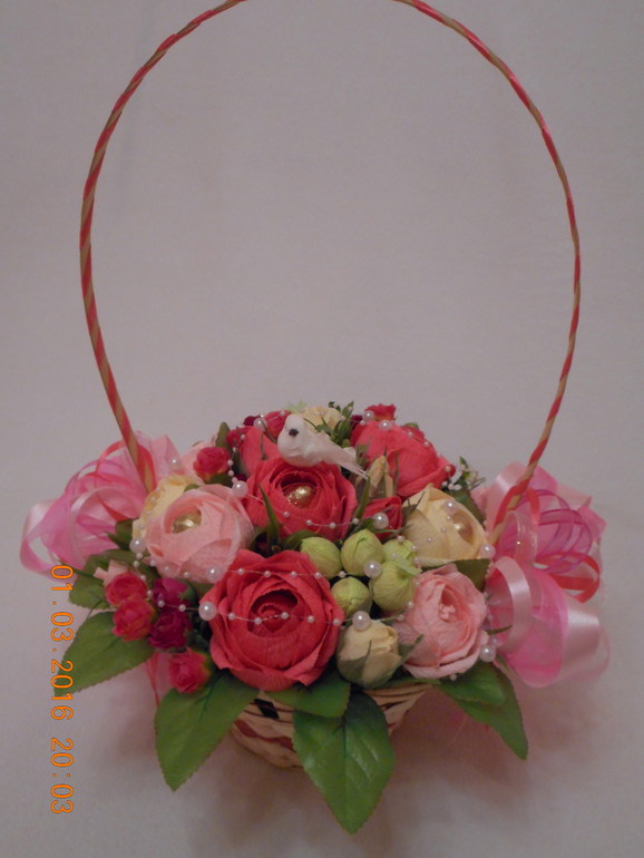 Очень красивые букеты и сами цветы! Единственное не люблю в таких корзинах высоченные ручки, отвлекают от композиции. Я укорачивала)))