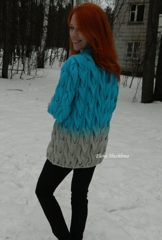 Вязание спицамиДа-да, впервые не из полушерсти или шерсти)) А точнее этот кардиган связан из полухлопка, на летние вечера =) длина 70-75 см, размер 42-44