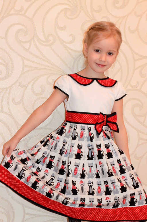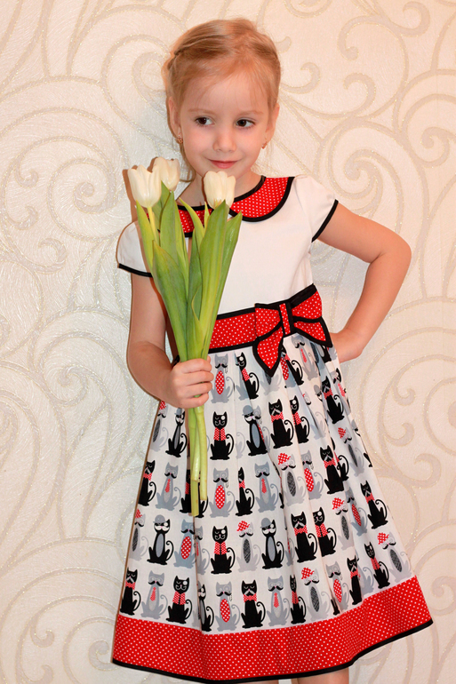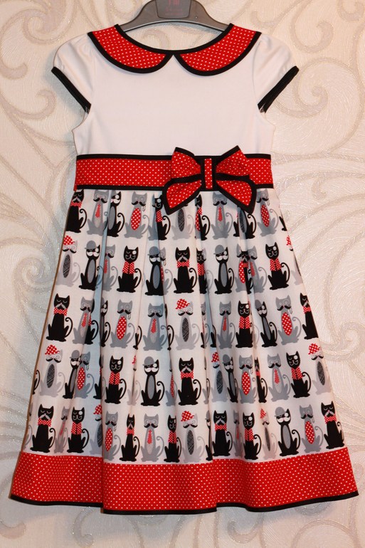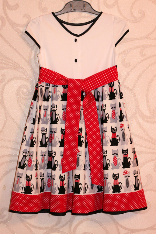 Шитье одежды, выкройки, ремонт одежды, шторы, швейные машины (уже приобретенные)Платьице для садика с забавными котами, почему мартовские? Смотрите, как они принарядились - галстуки, бабочки, шляпы... Весна!!!