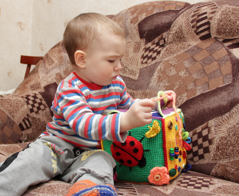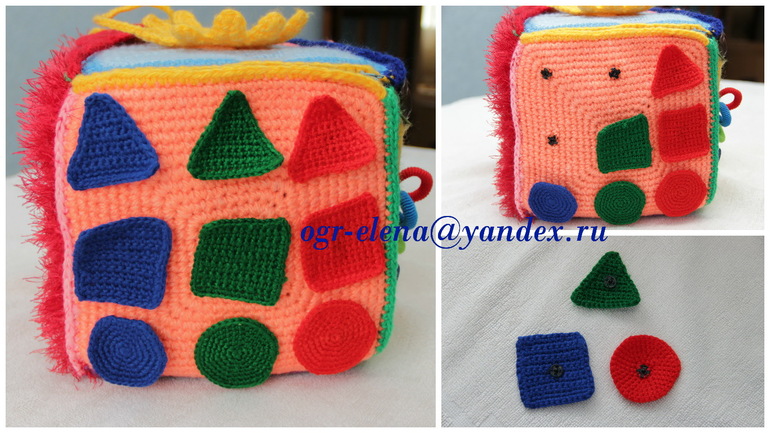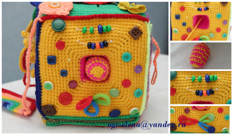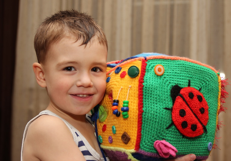 Развивающие игрушкиМоя первая развивающая игрушка - куб, связанный крючком. Вдохновили на создание идеи из интернета. Связался для моего сына еще 3 года назад. До сих пор одна из любимых игрушек.