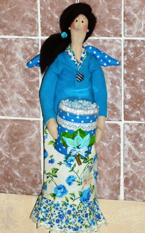 Кукольный мир - человекоподобные куклыСшила еще одну куколку -хранительницу,на этот раз предназначена в подарок. ПОд юбочкой располагается туба с ватными дисками,есть петелька для подвеса.Думаю ,должна понравится))).