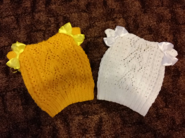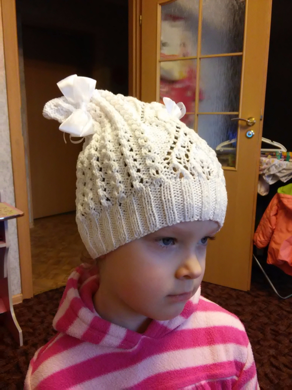 Вязание спицамиВсе ломала голову,какие шапочки своим младшеньким связать...надоели уже стандартные ... и вот идея родилась , когда увидела в продаже турецкие шапочки . Смотрите , что получилось .Бантики тоже делала сама. Накупила ленточек и фантазировала! Под катом много фото.