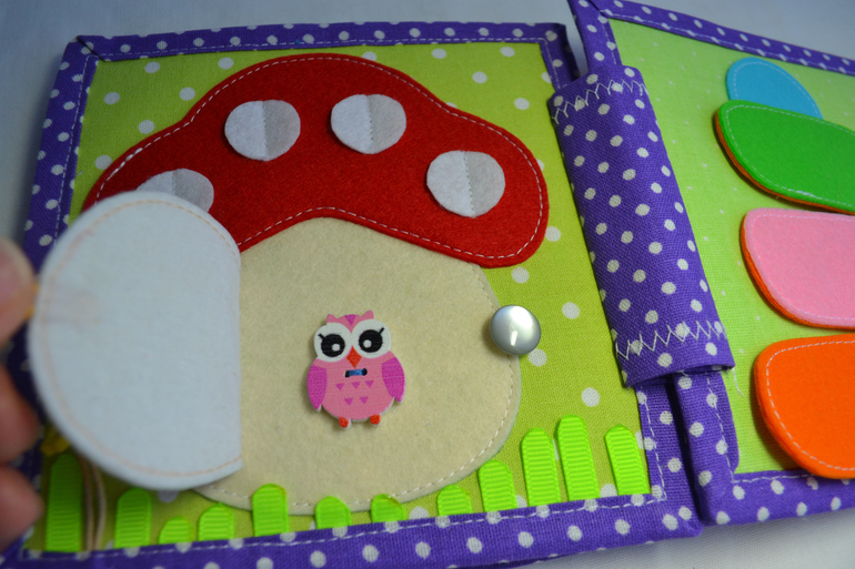 Развивающие игрушкиСшила еще одну развивающую мини-книжечку размером 14*14 см. Для малышки Верочки.