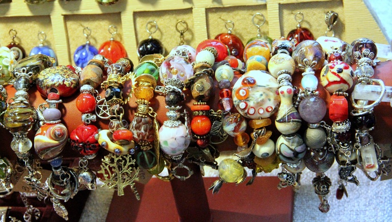 Авторский лэмпворк. Это браслеты, каждая бусина отлита из стекла, ни одна не повторяется,у каждого украшения своя идея, они тактильно-приятные и очень красивые.