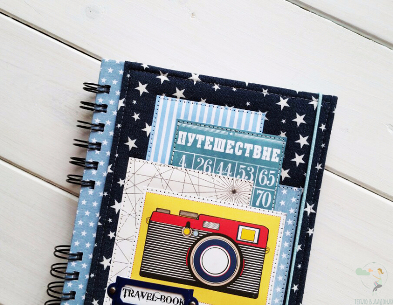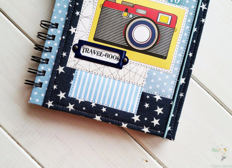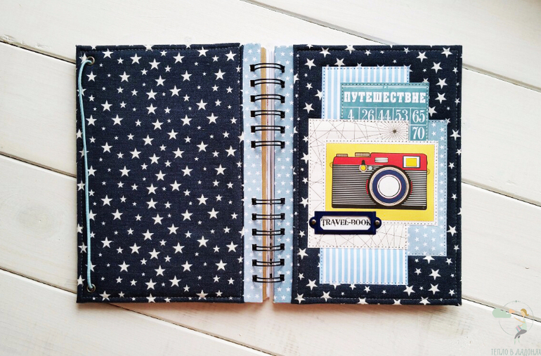 Получился такой - формат А5, крепление листочков - на пружинке. Обложка обтянута хлопком, закрывается на резинку.