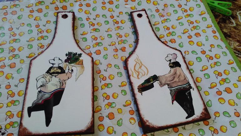 Делаю подруге в подарок кухонные досочки в технике декупаж. Осталось покрыть лаком. Как вам?