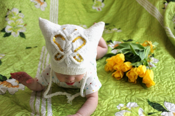 Очень красивая шапочка, но я бы еще ушки прошила и немного стянула, как будто шапка-котенок. Но это на мой вкус.)