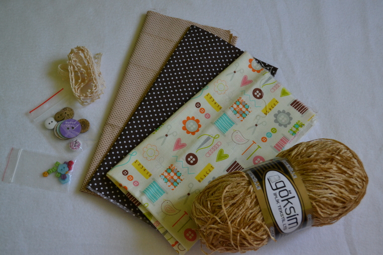 Конечно же Катуся не забыла про моего хомяка - ему достались велюровые ниточки для создания моих звериков, кофейные тканюшки-компаньоны и тканюшка со швейной тематикой, наверное для моих органайзеров для ножниц :) а ещё разноцветные пуговки-блошки и целый пакетик деревянных (моих любимых) пуговок, а ещё хлопковое кружево, которое отлично сочетается с кофейными тканюшками)))