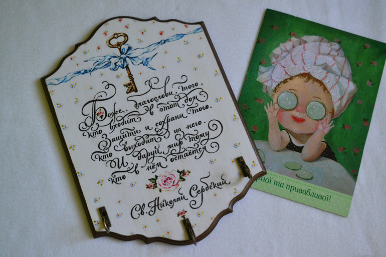 Самым главным и неожиданным подарочком-сюрпризом была для меня ключница, именно ТАКАЯ была в моих хотелках уже больше 3х лет, а почему неожиданной, да потому что Катуся декупажить-то не умеет! она заказа эту красотищу у нашего харьковского мастера, специально для меня)))