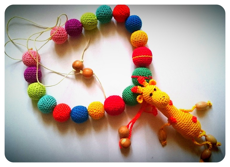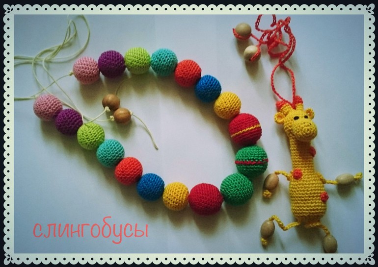 Вязание крючком (РАБОТЫ И СХЕМЫ)Связала слингобусы с жирафов. По весеннему яркие. Бусины можжевеловые.