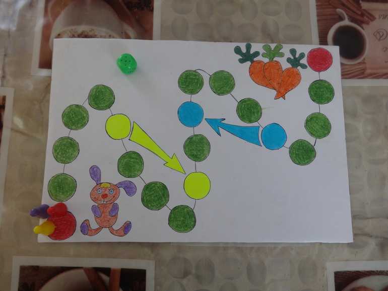 Обычные ходилки, только самый облегченный вариант с минимальным количеством клеточек для самых маленьких. Нарисовала на работе пока время свободное было. Дома просто приклеила 2 листа формата А4 на картон. Очень просто ,но дочке игры понравились, правила понимает, кубик кидает, фишками ходит, считает сама. Так здорово наблюдать, как в твоем ребенке разум просыпается)))