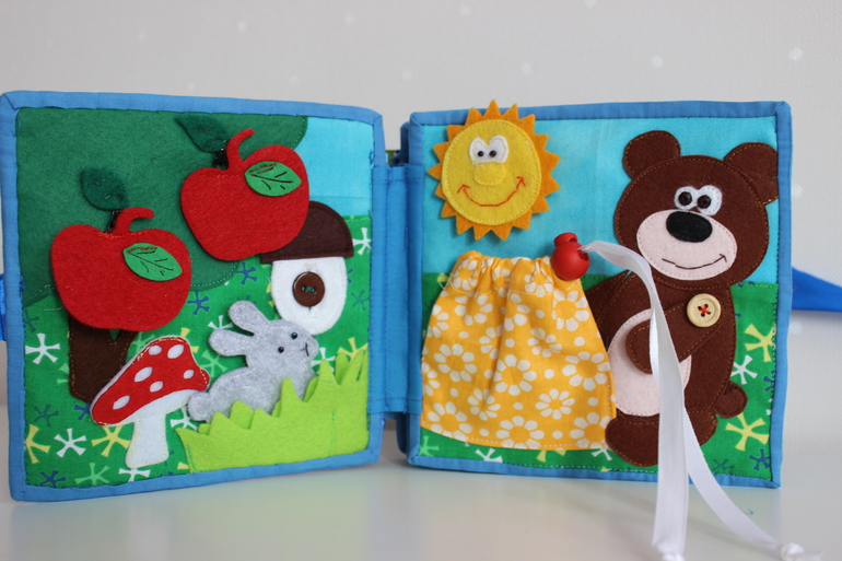 Развивающие игрушкиДоделала мини-книжечку развивашку для мальчика Дениса. Обложка выглядит вот так: Осторожно, много фото:
