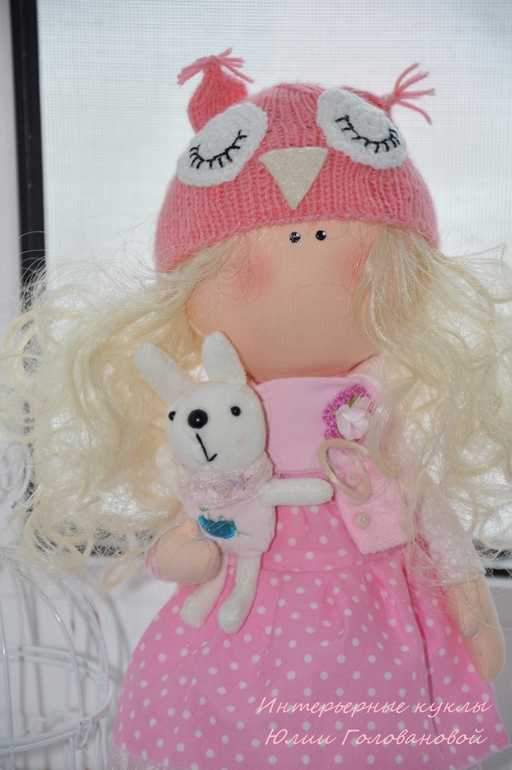 Любимая совинья шапочка, любимый горошек, нежный розовый цвет, зайка в ручке......Всё это моя новая девочка. Рост куколки 36 см.