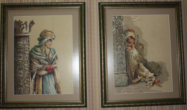 ой, я даже не знаю. Я в вышивке ноль )))) Я только знаю, что та девушка кот сидит на полу.. называется "Арабка" фирмы Ланарте. Другая наверное тоже этой фирмы