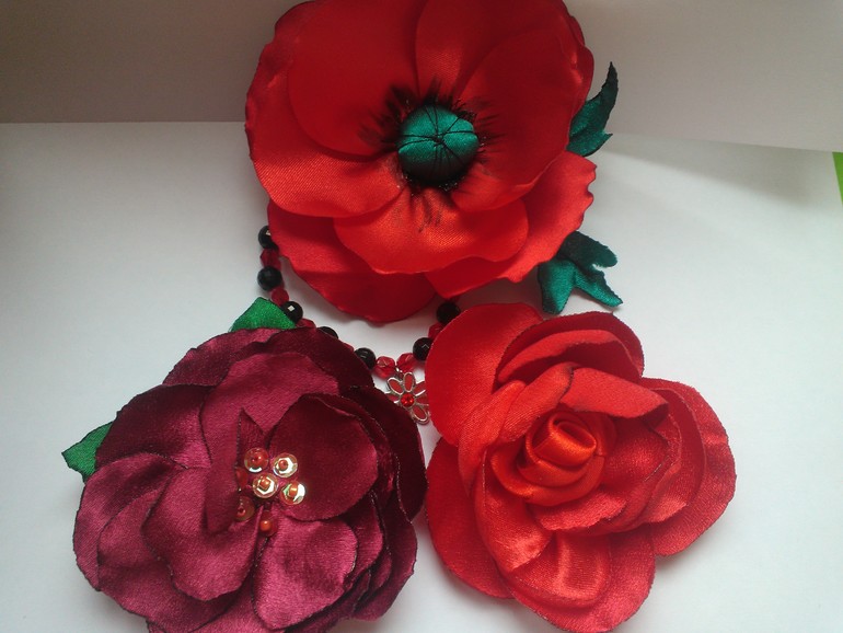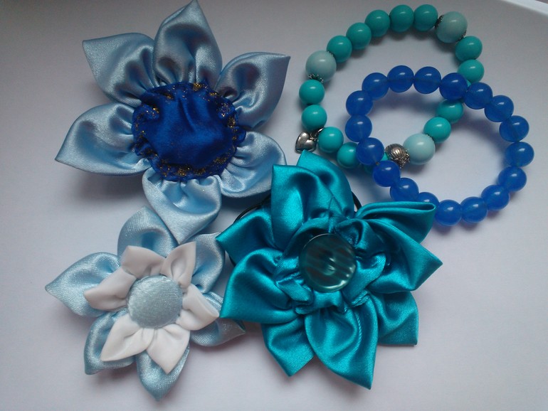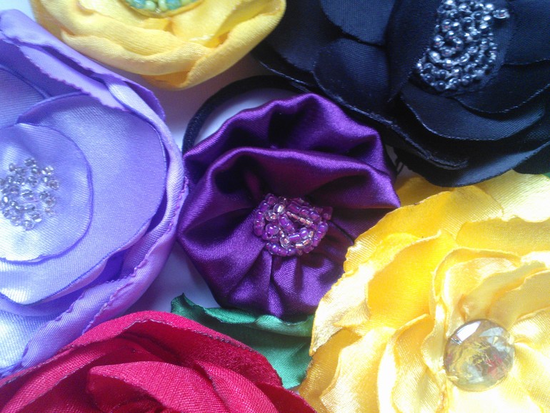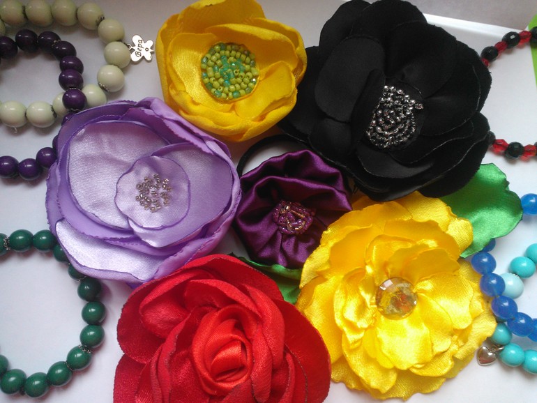 Цветы из ткани и форма. Канзаши. Украшения для волос.Под като много фото.