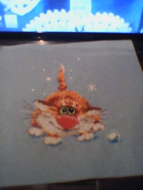 У меня вышит давным-давно один с сосиской (очень похож на этого кота, только толстый как шар), в наволочку на подушку оформила. Одеяло - это классно))