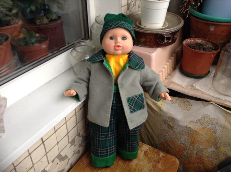Пупс здоровенный, поэтому ни в какой красивый фон не вписался)) так что вот, стоит на фоне зимнебалконного бардачка)