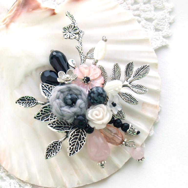 Бижутерия для слингомам. Слингобусы. Грызунки.Вот такая вот нежная брошечка получилась...