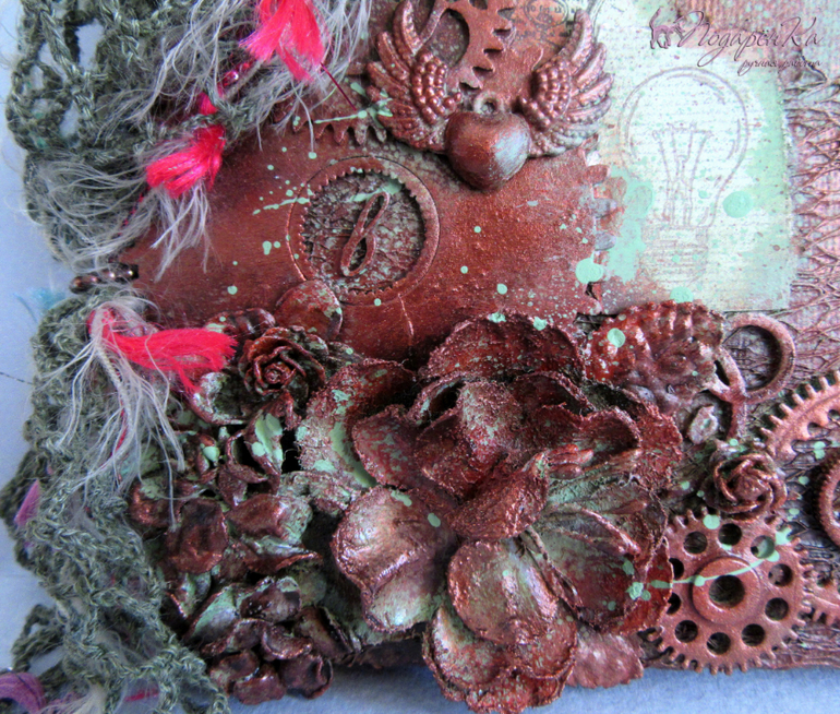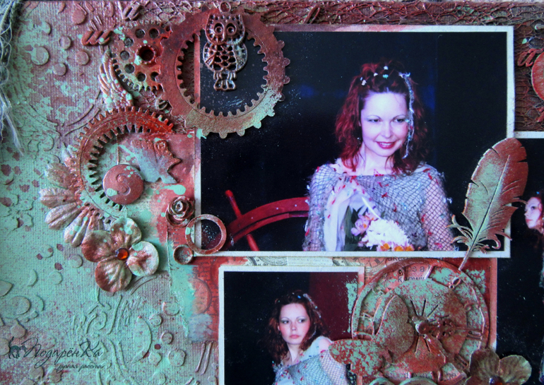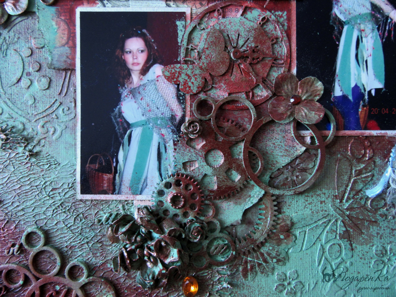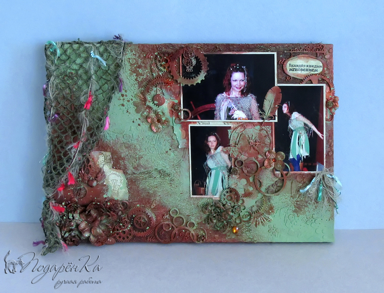 Скрапбукингдобрый день всем! Хочу похвастаться настенным панно, которое я сделала на ДР сестры. Идея пришла от фотографий, на которых она запечатлена в образе Кикиморы в народном спектакле)) все хотелось мне что-нибудь эдакое сделать, глядя на эти фотки)) использовала холст, чипборд, металлические украшения, рельефную пасту и акриловые краски. под катом много фото)![]()