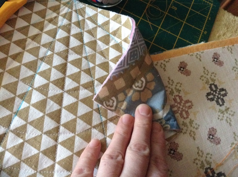 Собираем сэндвич. Подклад лицом вниз, утеплитель, лицевая ткань лицом вверх.