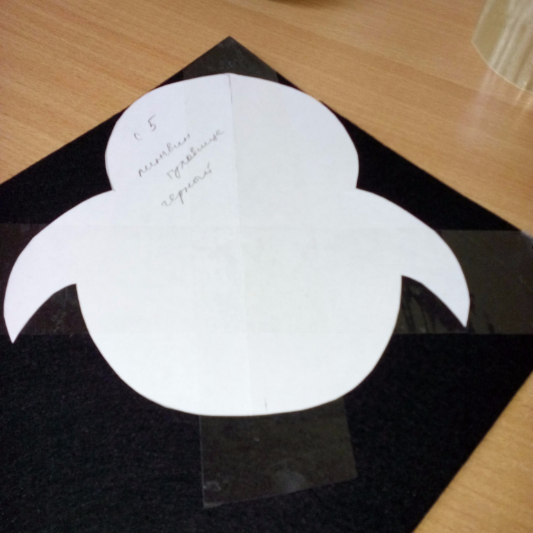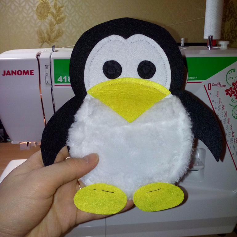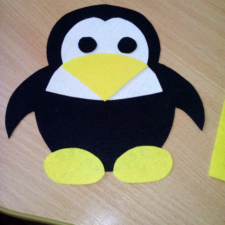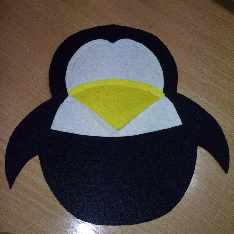2. Начинаю с выкройки пингвинчика: туловище, мордочка, глазки, носик, лапки.