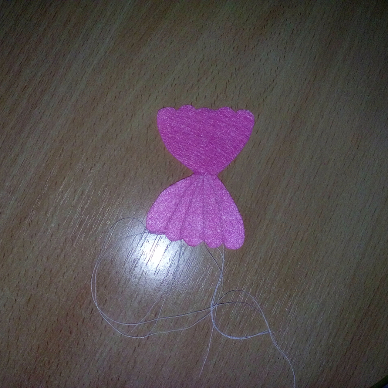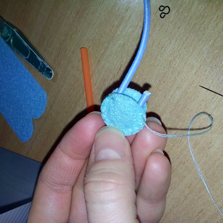 23. Переходим к удочке. Вручную сшила детали под магнит, вставила внутрь резинку и магнит, зашила.
