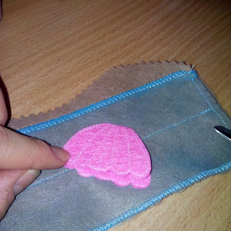 17. Вырезала раковину и проложила строчку контура осевых ребер.