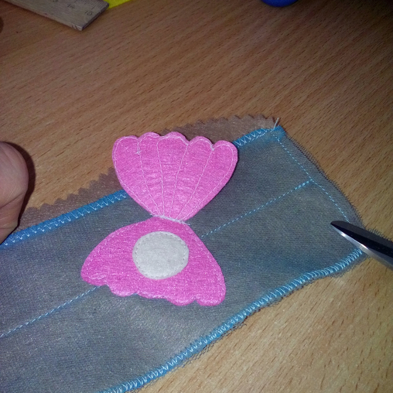 9. Вырезала мелкие детали: ракушку с жемчужиной, водоросли.