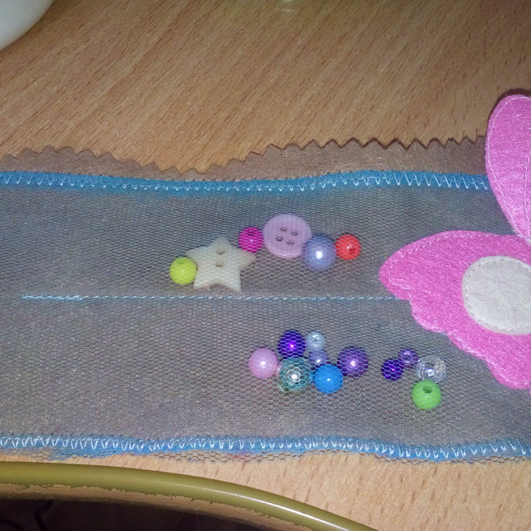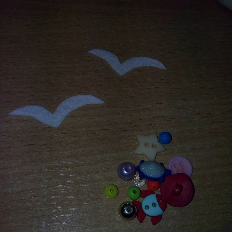 12. Подобрала подходящие пуговки и бусинки, вырезала чаек.