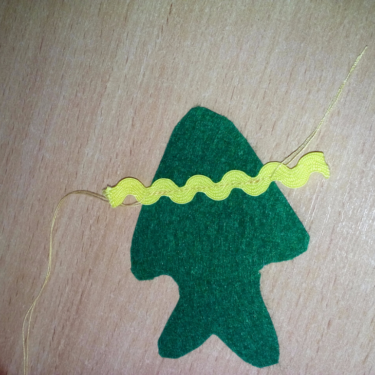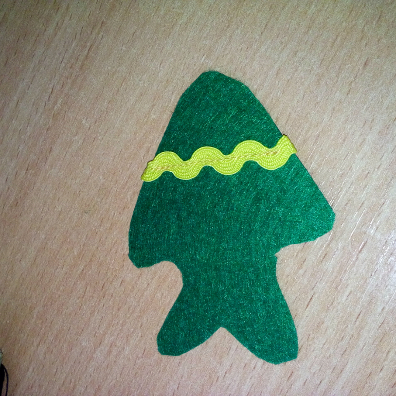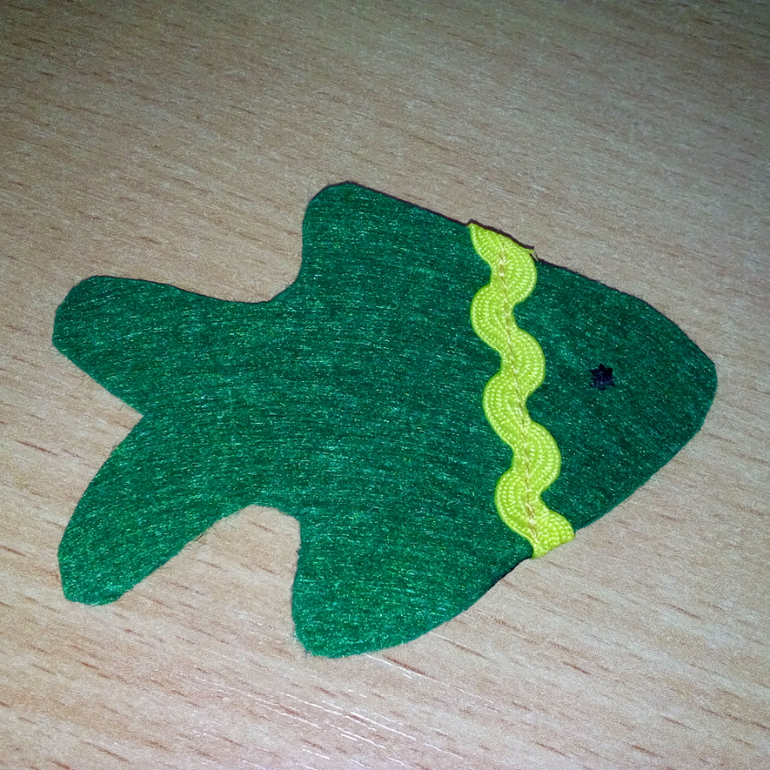 25. Приступила к рыбкам. Пристрочила тесьму-змейку, обрезала и опалила.