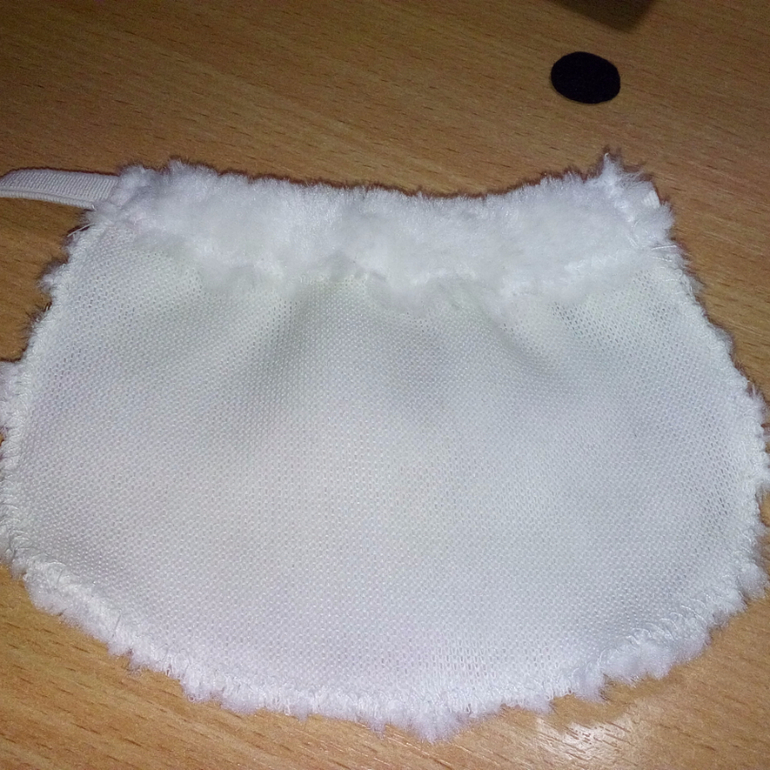 6. Немного помучилась с мехом, резинка стягивала деталь. Лучше мех приметать, чтоб было ровно.