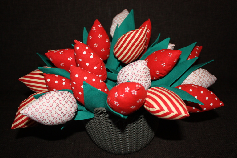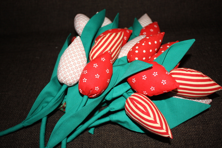 Да, у Оли мега-скорость. При чем только после моего поста она заказала ткань на ЯМ. Так вот уже ткань пришла, Оля из нее пошила тюльпаны и уже ко мне все пришло ))))))) Вот такая она молодчина )))