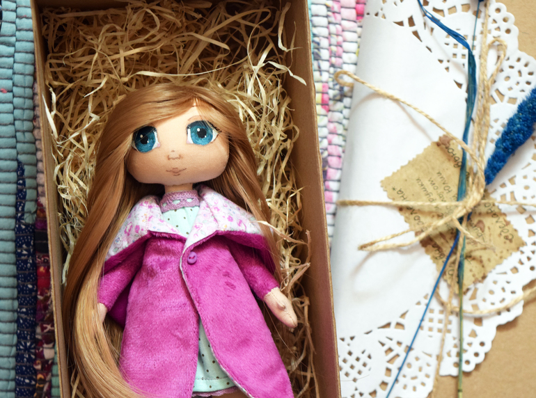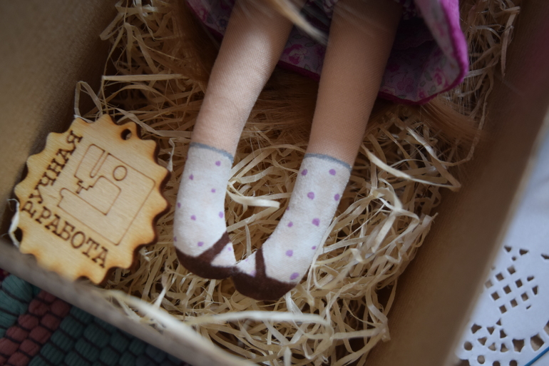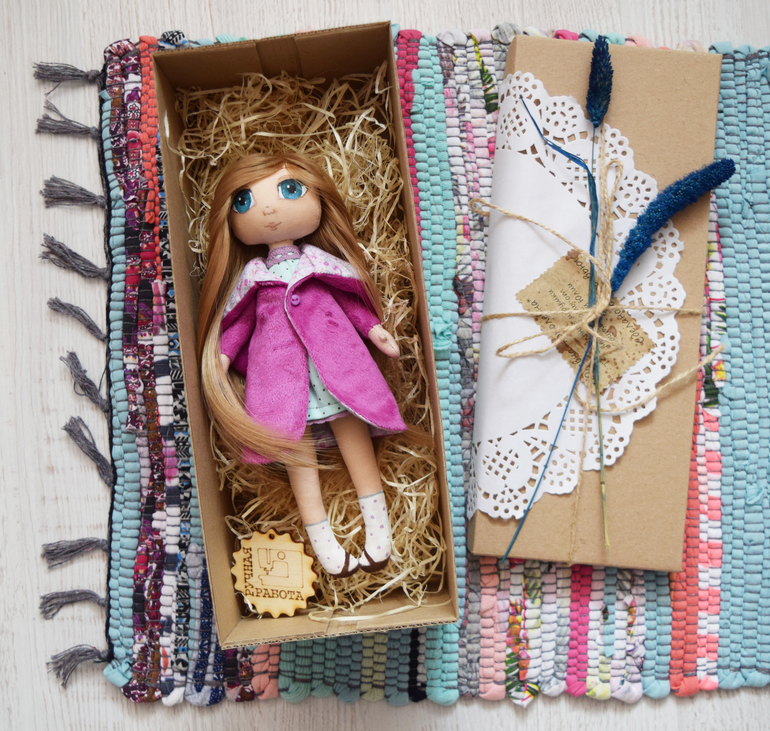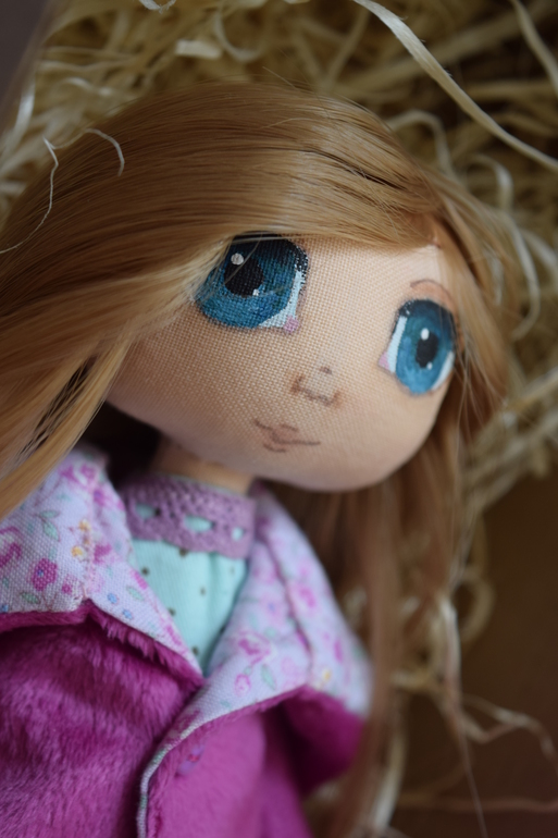 Вот и родилась Машенька)))прям полюбила её всей душой, как-то все легко и быстро получилось, на одном дыхании. Поставила на видное место, хожу кругами - любуюсь)) В Машеньке 22см, стоит на подставке, не сидит. Лицо расписано акрилом + пастель. Одежда не снимается.