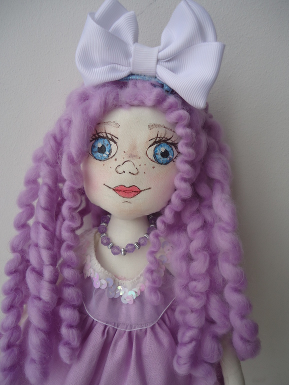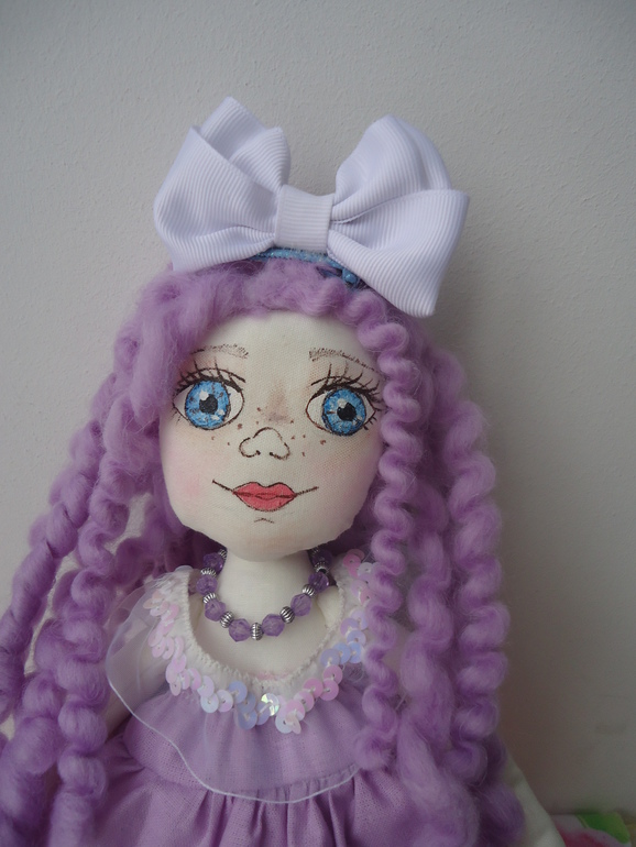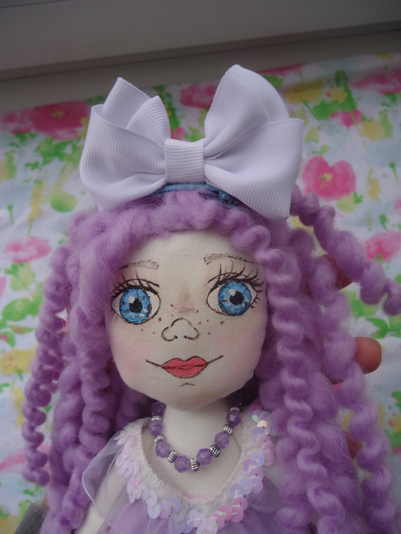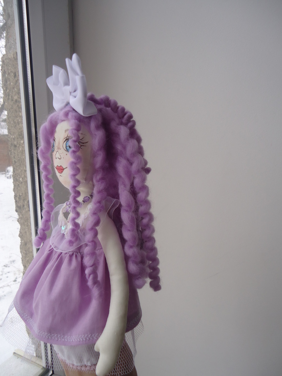 Если будете еще шить, то лучше набивать синтепухом и поплотнее. По поводу росписи лица, я бы немного притенила глаза под верхним веком, чтобы взгляд поглубже стал и бликов на губках не хватает, а так, все супер, ресницы такие клевые. Наряд очаровательный и даже снимается, ваще высший пилотаж.