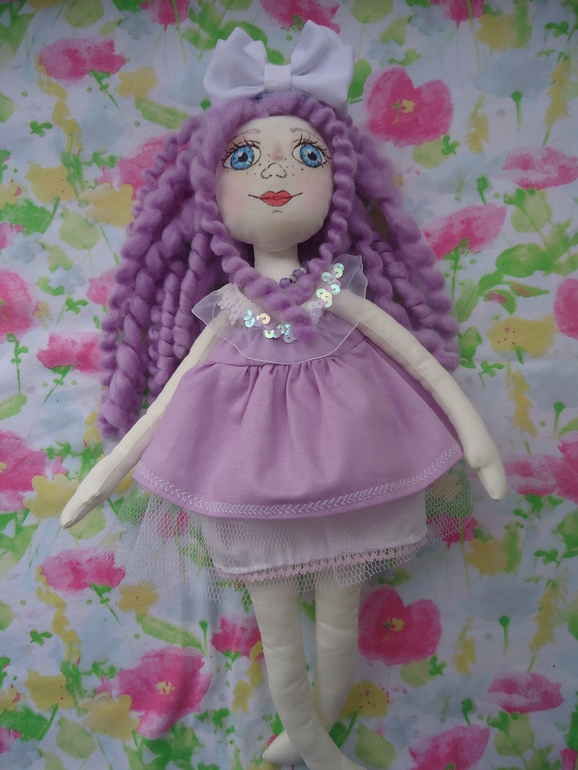 Кукольный мир - человекоподобные куклыПервая кукла, которую я сшила, полностью из хлопка, лицо расписано акриловыми красками для ткани, набита дорогущим утеплителем (брала мужу на куртку, но решила пустить в дело). Платье и бант съемные.