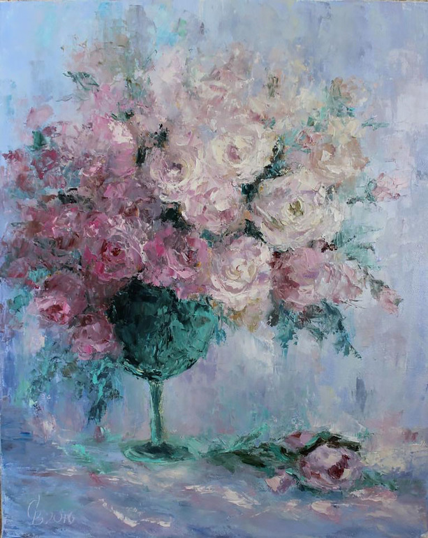 Моя картина на эту тему. "Розы", масло, холст 50*40см.