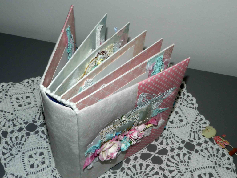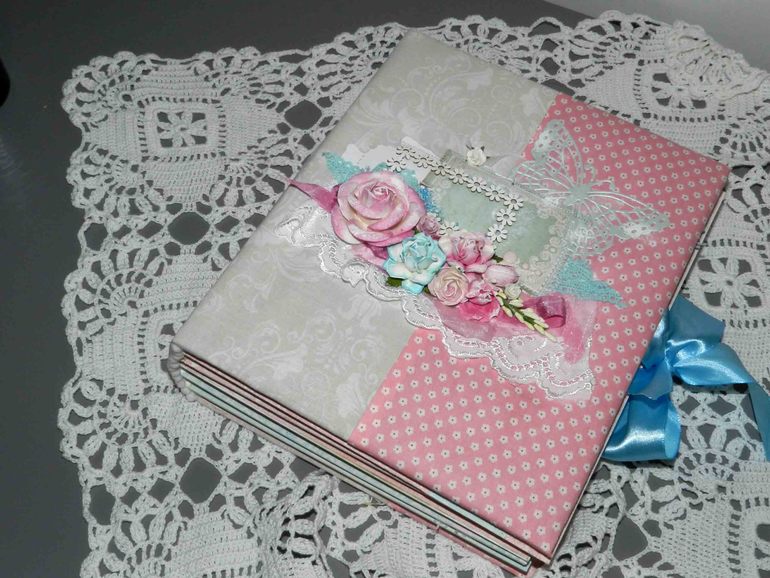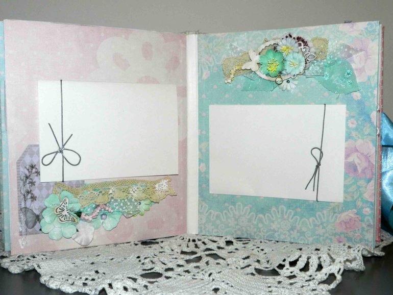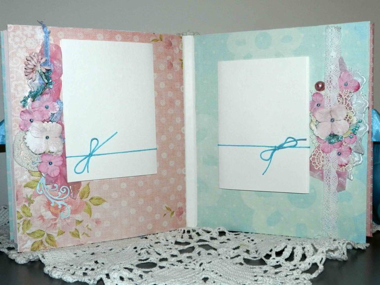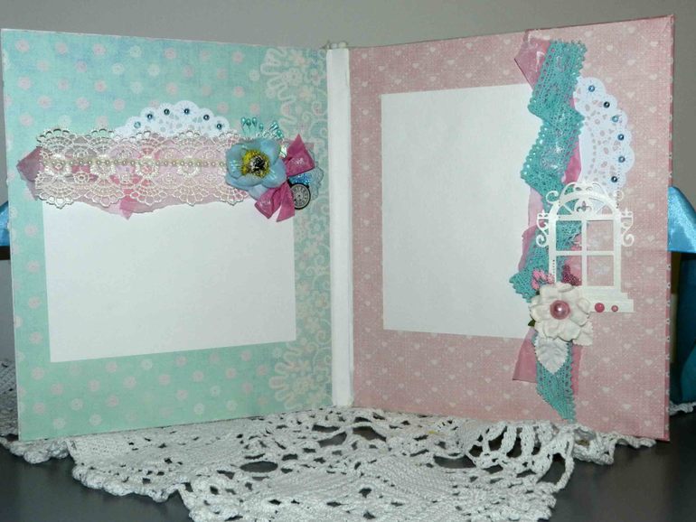 СкрапбукингДобрый вечер, девочки! Сегодня завершила альбом для фото с весенней фотосессии и спешу поделиться. Вместо долгожданной весны-на улице зима-снег, дождь, ветер. А у меня в альбоме цветы, кружева и бабочки! И все такое розово-голубое! Альбом вышел большим-21х25см, 6 разворотов, 32 фото вместит в себя. Загляните! Под срезом много фото.
