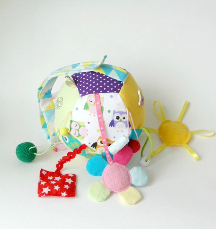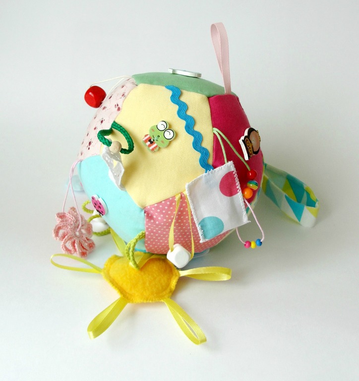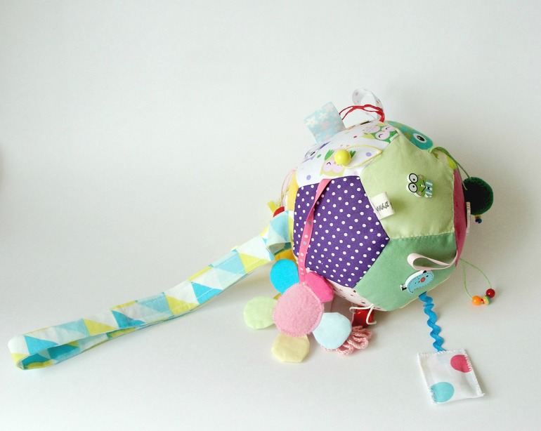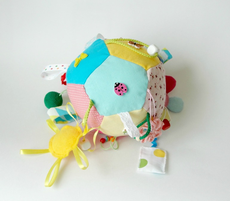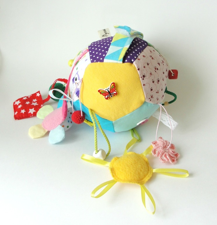 Развивающие игрушкиВ подарок для маленькой девочки я сшила вот такой развивающий мячик.
