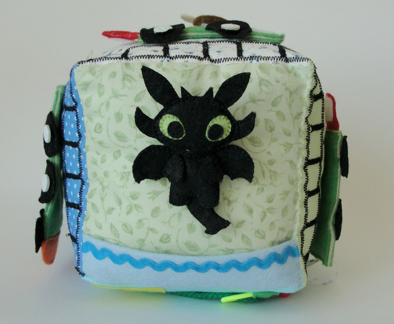 Развивающие игрушкиЭтот кубик я сшила для одного маленького мальчика, который очень любит поезда и драконов, а именно Беззубика))
