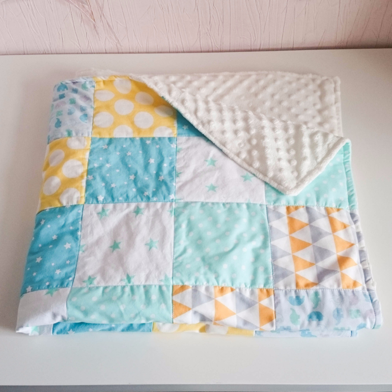 Ожидаем его ближе к маю, поэтому одеялко совсем тоненькое. Но утеплитель все-же совсем не убирала, май маю рознь.